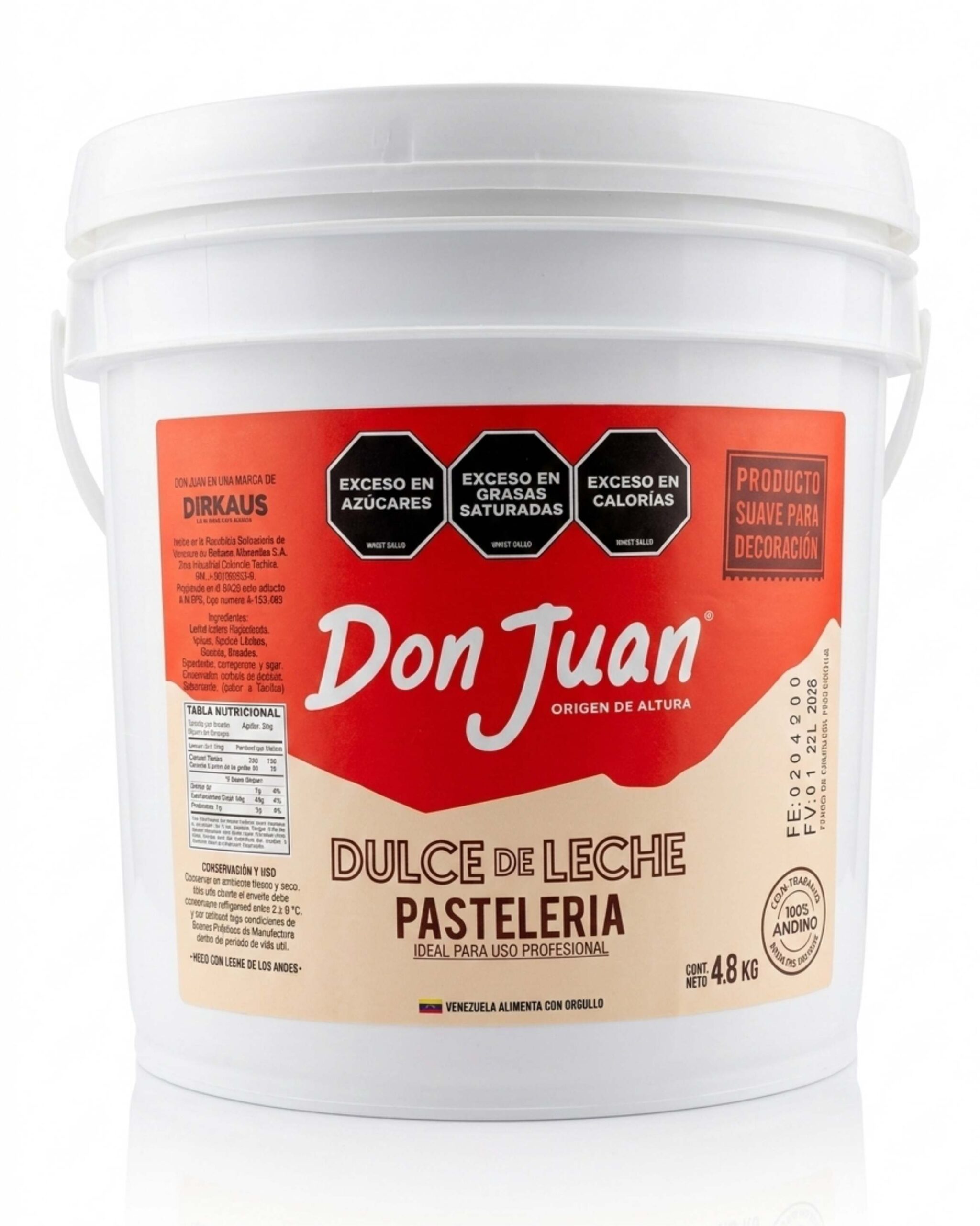 El Dulce de Leche Don Juan, bajo el sello de calidad de Dirkaus, es un producto de origen de altura elaborado con leche de los Andes venezolanos. Esta versión de pastelería ha sido desarrollada específicamente para el sector profesional, ofreciendo una suavidad excepcional que facilita el trabajo de decoración y cobertura en repostería fina.