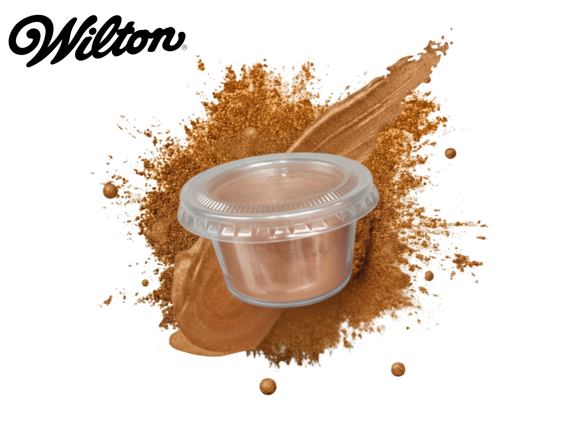 Añade un toque de brillo y sofisticación a tus creaciones de repostería con el Polvo Metalizado Wilton en tono bronce. Este polvo comestible es ideal para dar un acabado perlado a decoraciones de fondant, pasta de goma, glaseado real y más.Puedes aplicarlo directamente con un pincel para un brillo sutil, o mezclarlo con extracto de limón puro para crear una pintura metálica que te permitirá añadir detalles más definidos y elegantes a tus pasteles, galletas, flores de azúcar y moños.Es perfecto para celebraciones y eventos especiales, transformando cualquier postre en una pieza central deslumbrante. Ten en cuenta que es fabricado en equipos que también procesan soja y frutos secos.