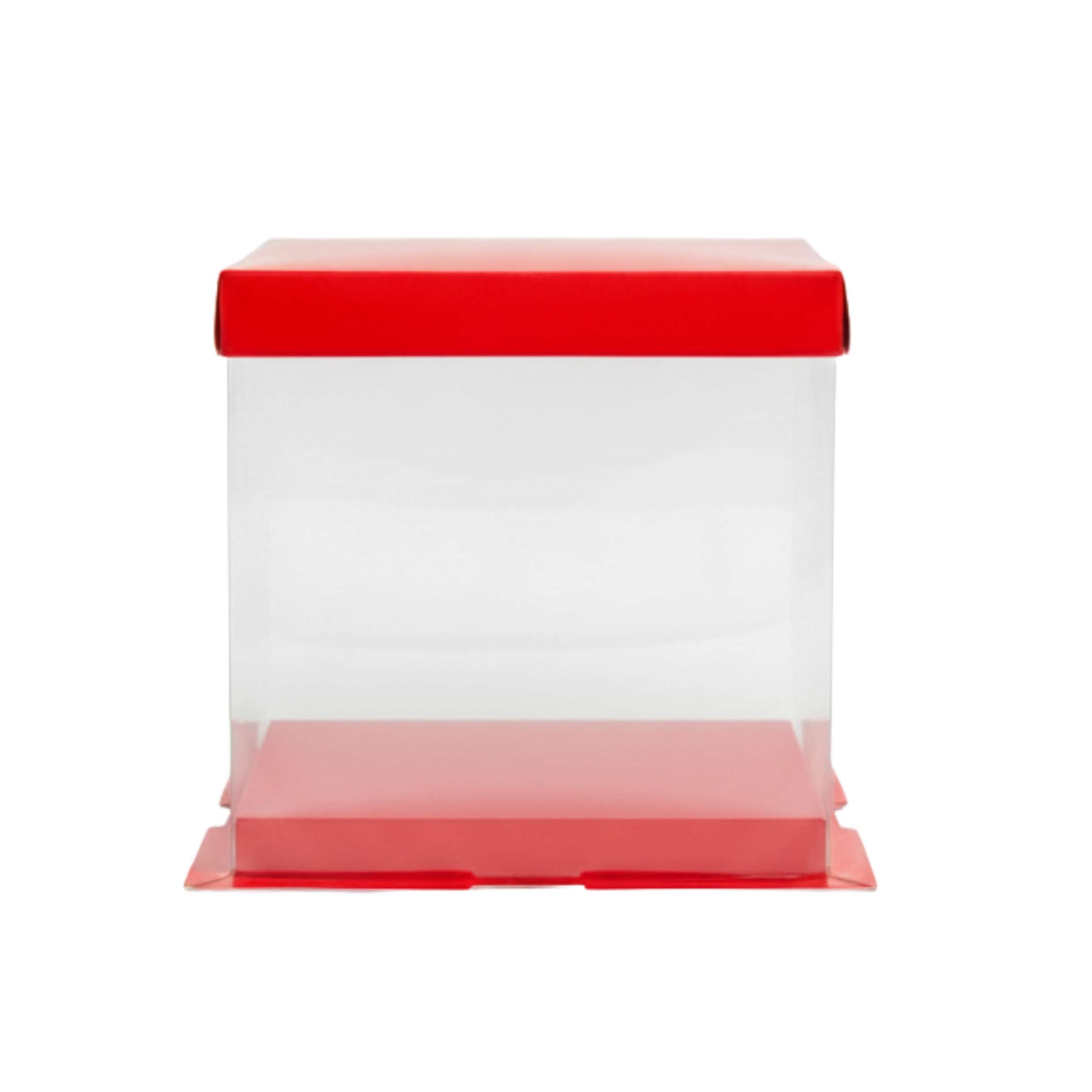 Las Cajas de Acetato Transparente con Base y Tapa Roja ofrece una solución de packaging versátil y visualmente impactante, ideal para la presentación de postres, regalos, souvenirs o arreglos. La estructura principal de la caja, fabricada en acetato de alta transparencia (PET o PVC de grado alimenticio), garantiza que el producto interior sea el protagonista, ofreciendo una vista panorámica sin igual.El contraste que proporciona la base y la tapa de color rojo vibrante (generalmente cartón rígido forrado o cartulina de alto gramaje) añade un toque de elegancia y festividad, haciéndolas perfectas para ocasiones especiales como San Valentín, Navidad, cumpleaños o aniversarios. Al estar disponibles en varios tamaños y alturas, este set permite acomodar desde un solo cupcake, una rosa, bombones, hasta tortas de mediana altura, mug cakes o figuras de repostería elaboradas.