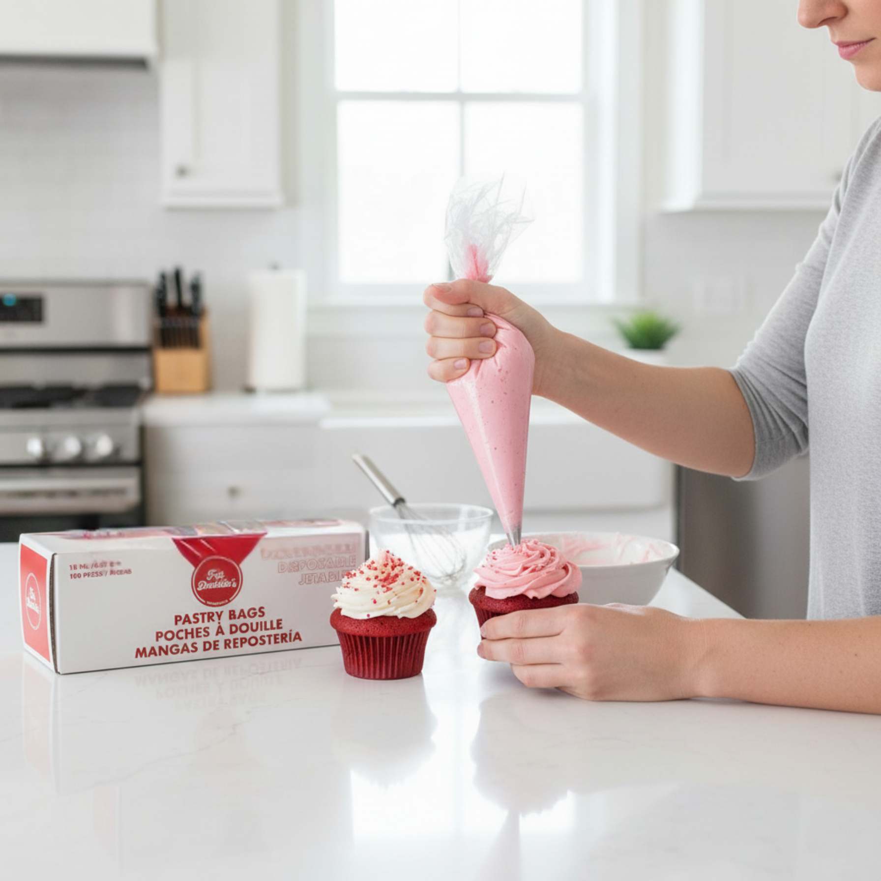 Eleva tu repostería con las mangas pasteleras desechables de 18 pulgadas de Fat Daddio’s, perfectas para uso profesional o doméstico. Fabricadas con un polietileno extragrueso y transparente, estas mangas son excepcionalmente duraderas, resistentes a las roturas y fáciles de manejar, incluso con los glaseados más espesos.Cada caja incluye 100 unidades, proporcionando un suministro abundante para tus creaciones, desde la decoración de pasteles y galletas hasta el relleno de cupcakes y el montaje de postres. Gracias a su diseño de un solo uso, te permiten mantener un ambiente de trabajo higiénico y limpio, ahorrándote tiempo en la cocina.