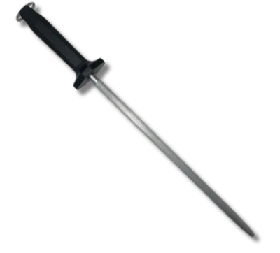 La chaira de acero Mundial de 12″ es la herramienta definitiva para el mantenimiento de cuchillos de alto rendimiento en cocinas profesionales. Su varilla de 12 pulgadas, fabricada con acero de alta calidad, permite enderezar y afilar el filo de las hojas de forma rápida y eficiente, garantizando que sus cuchillos se mantengan en óptimas condiciones por más tiempo.