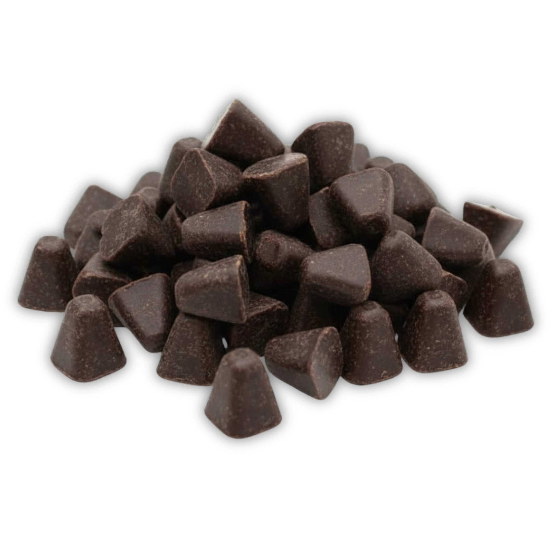 Descripción del Producto: Las Gotas (Conos) de Chocolate Extra Bitter 75% Mantoro son pequeñas porciones de chocolate oscuro, ideales para aplicaciones de repostería que exigen un sabor a cacao intenso y profundo. Con un 75% de sólidos de cacao, este chocolate se clasifica como «Extra Bitter» o amargo, ofreciendo un perfil de sabor robusto con un bajo nivel de dulzor residual.La alta concentración de cacao venezolano aporta notas complejas de frutas secas, madera y una acidez agradable, perfecta para contrastar con ingredientes dulces o lácteos. La forma de gota o chip («cono») asegura:Fusión Optima: Se derriten de forma rápida y homogénea, facilitando la elaboración de mousses, coberturas, cremas y ganaches con un sabor a chocolate superior.Resistencia en Horneado: Mantienen su forma y textura dentro de masas de galletas, muffins y panes, evitando que se derritan completamente y añadiendo puntos de sabor amargo.Uso Profesional: Es el chocolate de elección para chefs y reposteros que buscan un producto de alta calidad para coberturas brillantes que requieren templado o como ingrediente principal en recetas que demandan pureza de cacao.