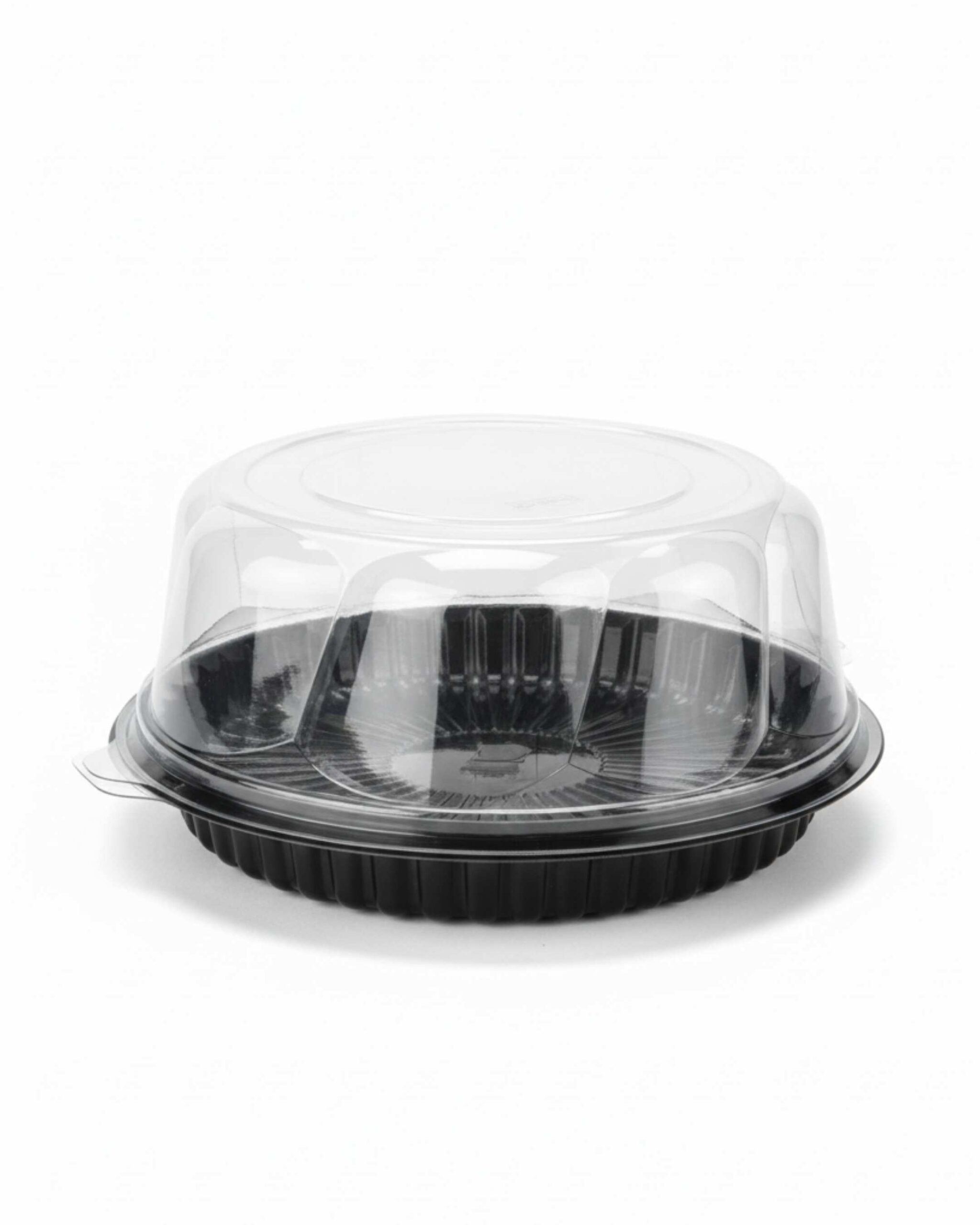 El Domo Circular Darnel de 18.5 cm en su configuración de base honda es el empaque de elección para mini tortas, postres con rellenos altos o tartas que necesitan un soporte estructural extra. Su diseño compacto y estilizado lo convierte en una opción premium para entregas individuales, asegurando que el producto se mantenga estable y visualmente atractivo desde que sale de la cocina hasta que llega al consumidor final.