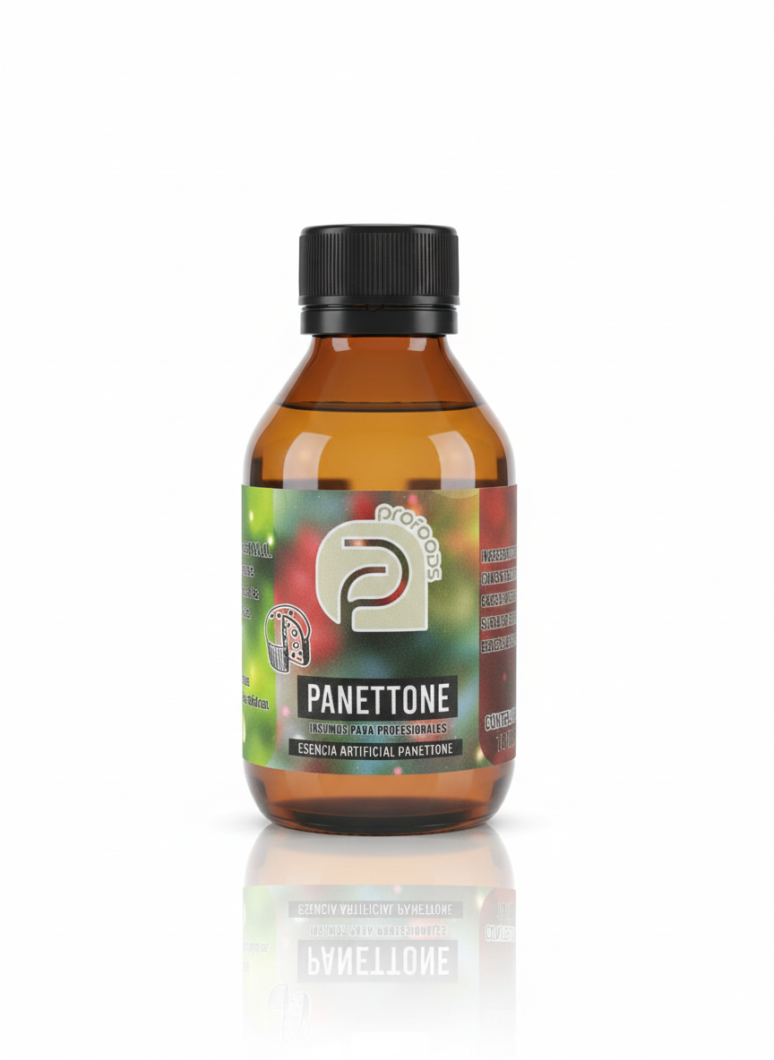 La Esencia para Panettone PROFOODS es un saborizante alimenticio concentrado, especialmente diseñado para replicar y potenciar el clásico y complejo perfil de sabor del tradicional panettone italiano. Este aroma busca capturar la esencia festiva con sus características notas de cítricos, vainilla, mantequilla y frutas confitadas.La presentación de 100 ml es ideal para profesionales y amantes de la repostería que buscan un sabor auténtico y consistente en sus productos.Perfil Aromático: Ofrece una mezcla armónica que evoca la calidez del panettone: un dulzor esponjoso, un toque cítrico brillante (naranja y limón) y un suave fondo de vainilla y mantequilla.Uso Profesional:Esta esencia es perfecta para realzar el sabor y el aroma en:Panadería de Festividades: Panettone, Pandoro, brioches y panes dulces.Repostería General: Bizcochuelos, muffins, galletas y magdalenas.Postres y Rellenos: Cremas pasteleras, buttercream, glaseados, flanes y helados.Estabilidad: Es apta para resistir altas temperaturas de horneado sin perder su potencia aromática.