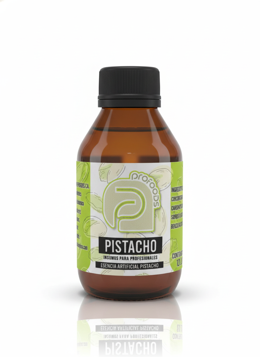 La Esencia de Pistacho PROFOODS es un saborizante alimenticio líquido y concentrado, diseñado para impartir el sabor rico, elegante y ligeramente tostado del pistacho a cualquier preparación de repostería y confitería.Con su presentación de 120 ml, esta esencia de grado profesional ofrece una alta potencia aromática, logrando un sabor definido con solo unas pocas gotas, lo que la hace altamente rentable para producciones de gran volumen o para repostería casera especializada.Perfil de Sabor: Esta esencia busca replicar el sabor característico del pistacho, con notas suaves a nuez, un fondo cremoso y un toque ligeramente dulce, que enriquece cualquier receta.Aplicaciones Ideales:Heladería y Postres Fríos: Helados, cremas, mousses, y batidos con un toque gourmet.Repostería Horneada: Bizcochos, magdalenas, galletas, macarons y frostings, ya que su aroma es resistente a las altas temperaturas.Confitería: Salsas dulces, rellenos, y para saborizar chocolates y caramelos.