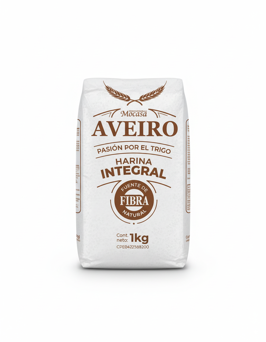Para quienes buscan una opción más nutritiva, la Harina Integral Aveiro es el ingrediente ideal. Molida a partir del grano de trigo completo, conserva toda su fibra, vitaminas, minerales y un sabor robusto y característico que eleva el perfil de cualquier receta. Su formato de 1kg es perfecto para la cocina casera. Úsala para preparar panes saludables, galletas, muffins y una variedad de horneados con una textura más densa y un sabor distintivo. Es la base perfecta para una alimentación más equilibrada y deliciosa.Ingredientes:Harina de trigo integral, hierro (como sulfato ferroso) y vitaminas (nicotinamida, mononitrato de tiamina, riboflavina, ácido fólico).Aviso de alérgenos: Contiene gluten.Información nutricional (por porción de 30g):Energía: 105 kcalGrasas: 0.6 gGrasas saturadas: 0.2 gCarbohidratos: 22.5 gAzúcares: 0 gProteínas: 2.8 gFibra: 3.5 gSodio: 1.5 mg