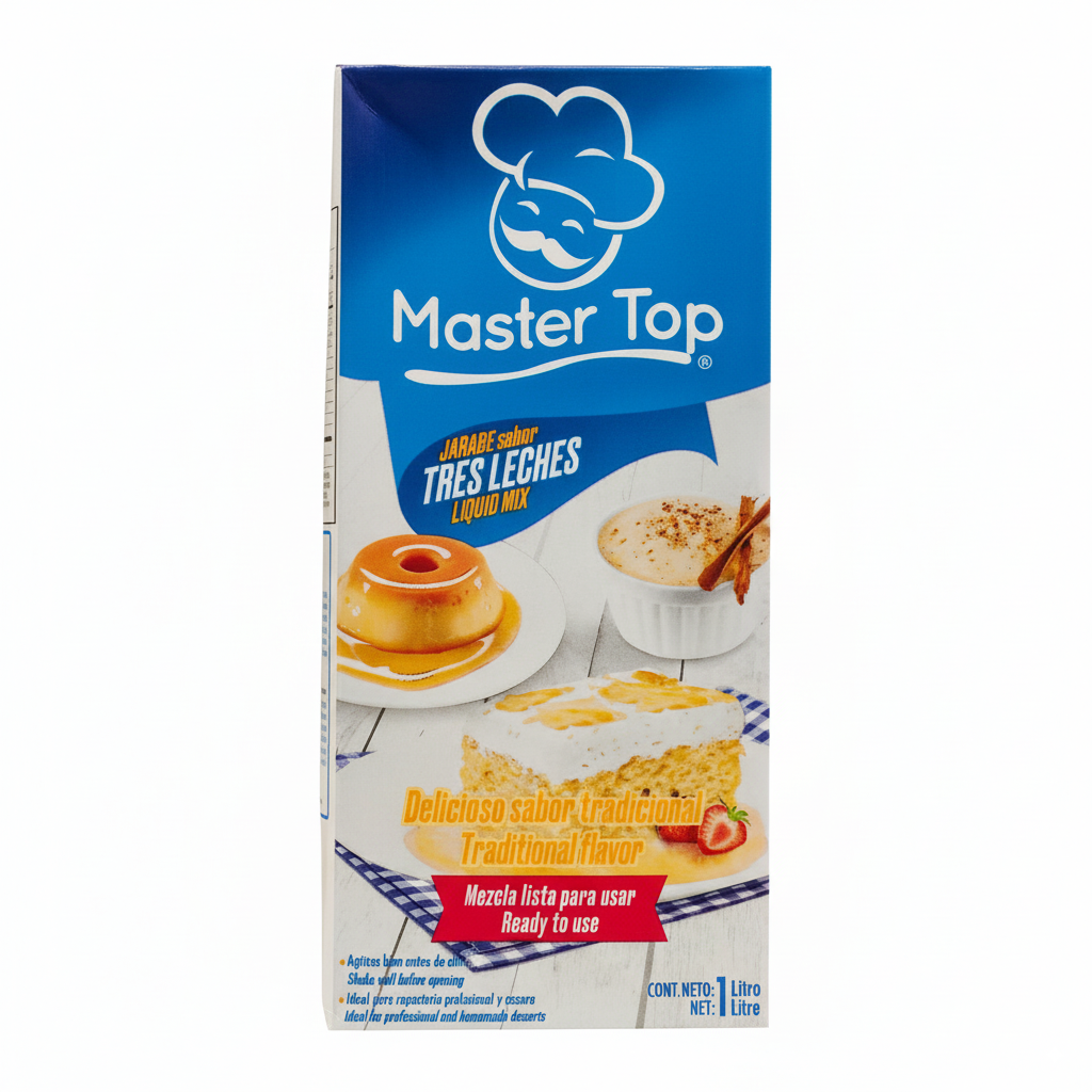 La Mezcla 3 Leches Master Top es la solución profesional y más conveniente para elaborar el icónico postre. Este producto UHT listo para usar combina la proporción perfecta de leche, leche evaporada y leche condensada, garantizando un sabor rico y consistente en cada lote. Su formato de 1 litro es ideal para panaderías y reposterías que buscan optimizar tiempos y simplificar procesos. Simplemente vierta la mezcla fría directamente sobre el bizcocho y disfrute de un resultado jugoso y delicioso.IngredientesLeche entera, leche descremada en polvo, azúcar, grasa vegetal, estabilizantes y saborizante natural.