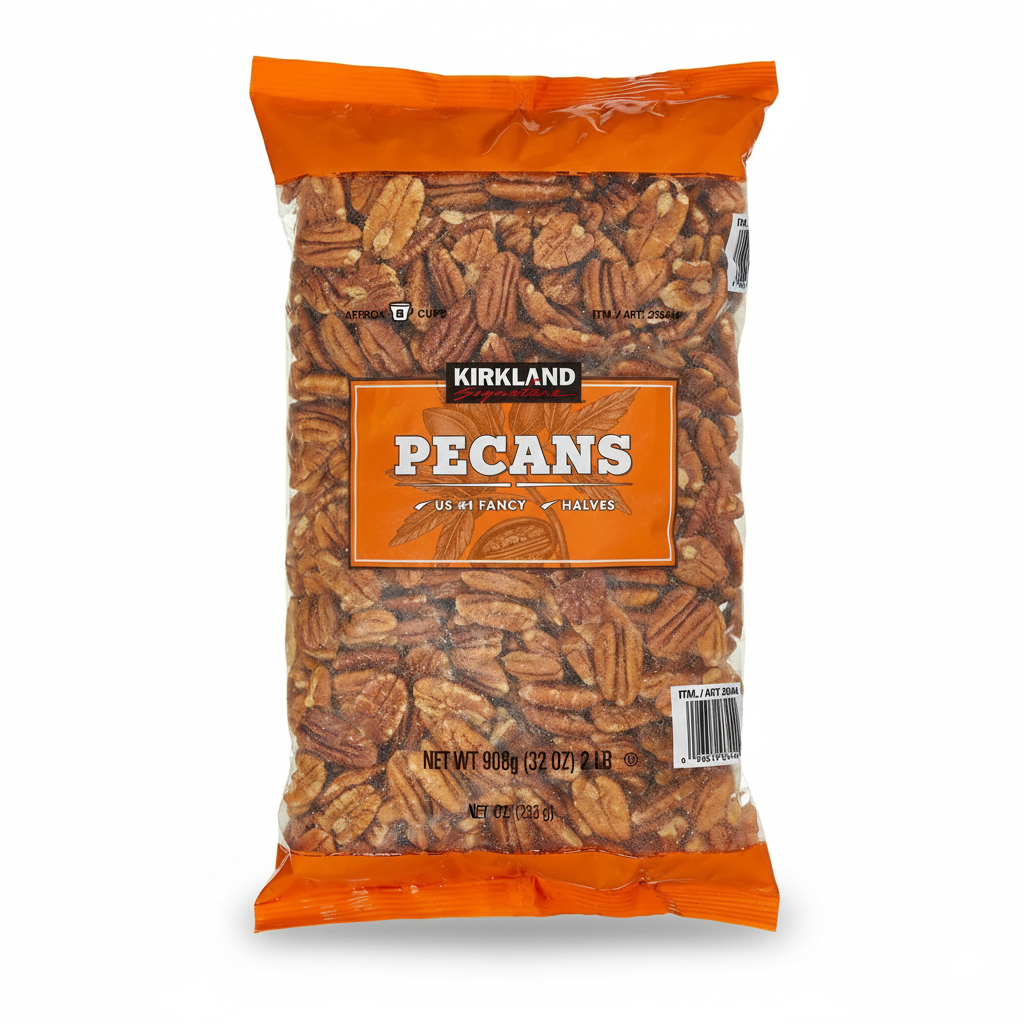Las Nueces Pecanas en Mitades Kirkland Signature son un fruto seco de alta calidad, clasificado típicamente como US Fancy #1 Grade (Grado Elegante #1 de EE. UU.). Vienen en una generosa presentación de 908 g (equivalente a 2 lb o 32 oz), ofreciendo mitades de nueces grandes con un sabor naturalmente dulce y mantecoso.Ingredientes:Nueces Pecanas (Pecans)Características Destacadas:Formato: Mitades (Halves), ideales para hornear y decorar.Pureza: Producto natural y crudo (sin tostar ni salar), sin conservadores ni aditivos.Saludables para el Corazón: Ricas en grasas monoinsaturadas (como el ácido oleico) y antioxidantes fenólicos, que contribuyen a la salud cardiovascular.Valor Nutricional: Gran fuente de fibra, proteínas, y vitamina E.Certificación: Kosher.