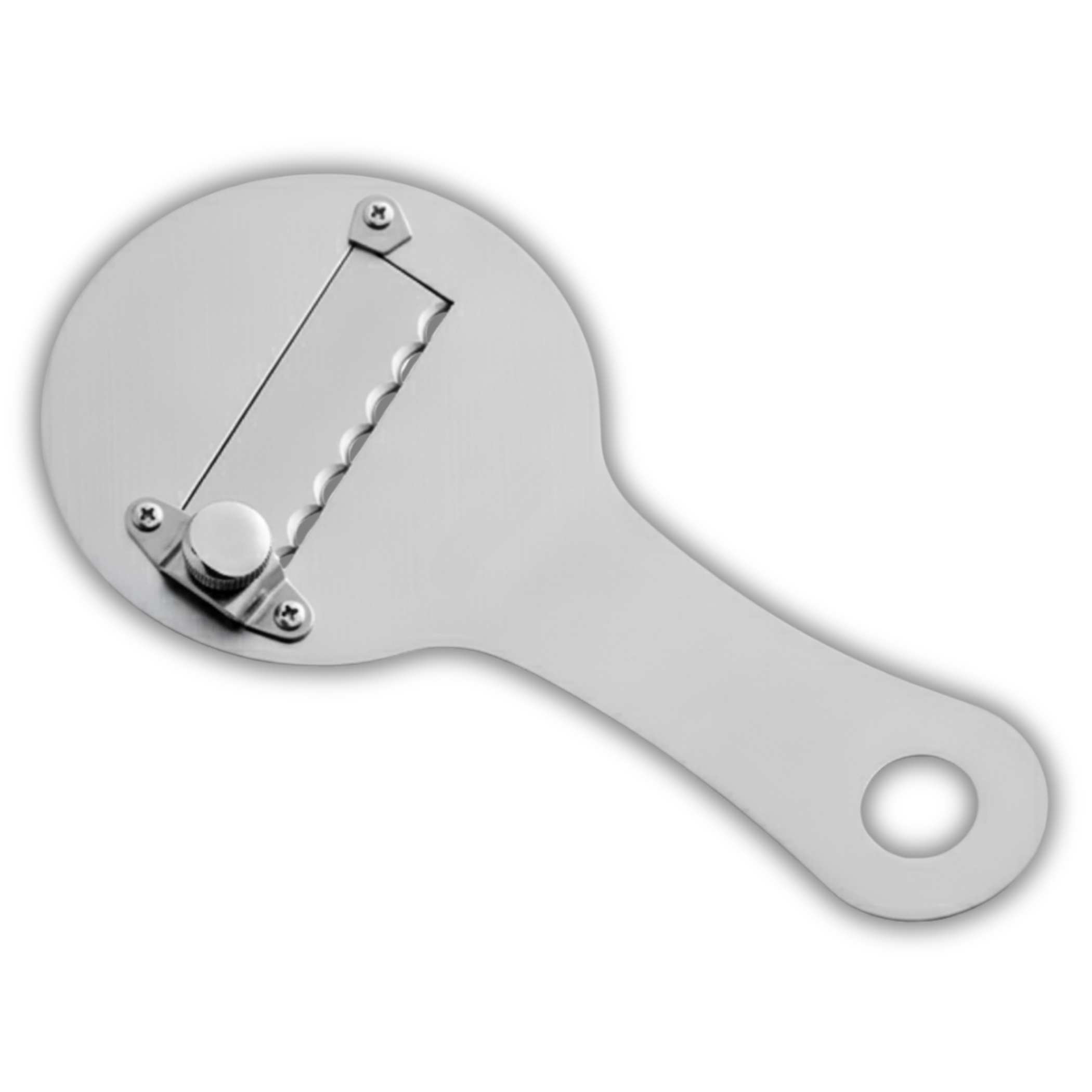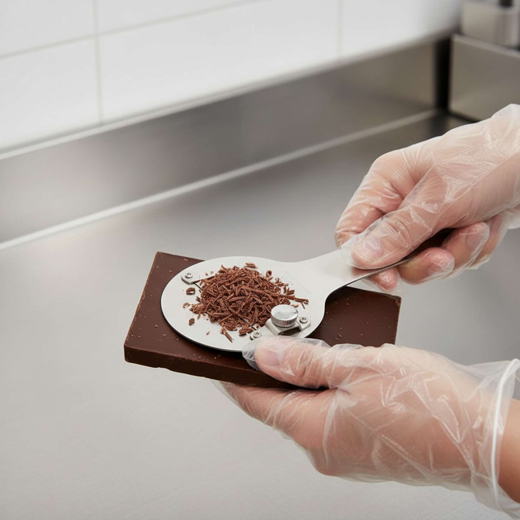 Diseñado para la precisión y la creatividad, el Rebanador y Cortador de Chocolate Ateco es una herramienta esencial para cualquier repostero, pastelero o chef chocolatero que busque dar un toque final de elegancia a sus creaciones. Este utensilio te permite obtener virutas, rizos o láminas de chocolate con un control total y sin esfuerzo, transformando un simple bloque de chocolate en una decoración profesional y atractiva.Características principalesHoja ajustable: Con una hoja afilada y ajustable, puedes controlar el grosor de cada rebanada, desde rizos finos y delicados hasta láminas más gruesas, garantizando un resultado consistente en cada uso.Versatilidad de uso: Aunque es perfecto para el chocolate, esta herramienta es sorprendentemente versátil y también se puede utilizar para crear virutas de queso duro, trufas, mantequilla, o incluso para laminar champiñones.Construcción duradera: Fabricado en acero inoxidable 18/8 de alta calidad, este cortador es resistente a la corrosión y fácil de limpiar, asegurando una larga vida útil y un rendimiento óptimo.Diseño práctico: Su mango ergonómico proporciona un agarre cómodo y seguro, mientras que el agujero para colgar facilita su almacenamiento en cualquier cocina.