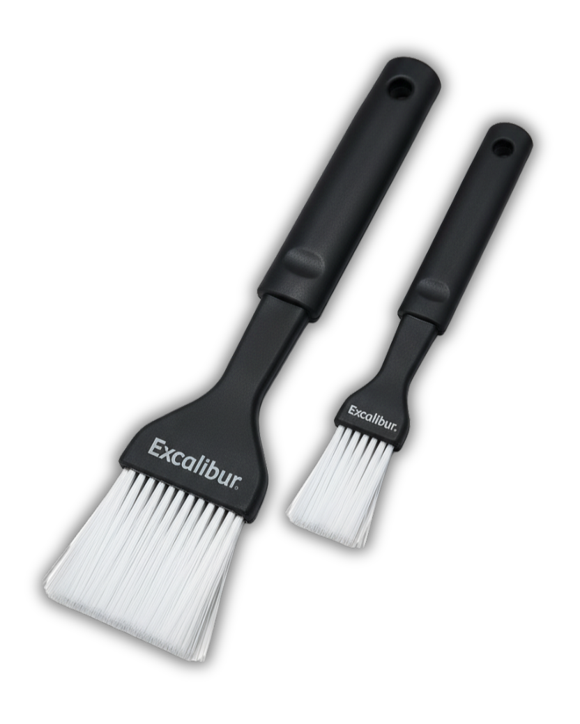 Eleva tus habilidades culinarias con este set de dos brochas de nailon de alta calidad de la marca Excalibur. Diseñadas para una aplicación precisa y un rendimiento excepcional, estas brochas son una herramienta esencial para cualquier cocina, ofreciendo la durabilidad y versatilidad que necesitas en tus preparaciones diarias.Características destacadasCerdas de nailon resistentes: Sus cerdas flexibles y duraderas aplican de manera uniforme aceites, salsas, adobos y glaseados sin desprenderse, y son lo suficientemente suaves para no dañar tus alimentos.Seguridad térmica: Fabricadas para resistir temperaturas de hasta 190°C, estas brochas son ideales para trabajar con líquidos calientes, como mantequilla derretida o glaseados recién hechos, directamente de la olla.Versatilidad en la cocina: El set de dos unidades te permite tener una brocha dedicada para preparaciones saladas (carnes y asados) y otra para repostería (pasteles y galletas), evitando la contaminación de sabores.Diseño funcional: Su diseño ergonómico asegura un agarre cómodo y firme, facilitando la aplicación controlada para resultados profesionales.Perfectas para untar, barnizar y dar un toque final a tus creaciones, estas brochas de nailon Excalibur se convertirán en tus aliadas favoritas para cualquier receta.