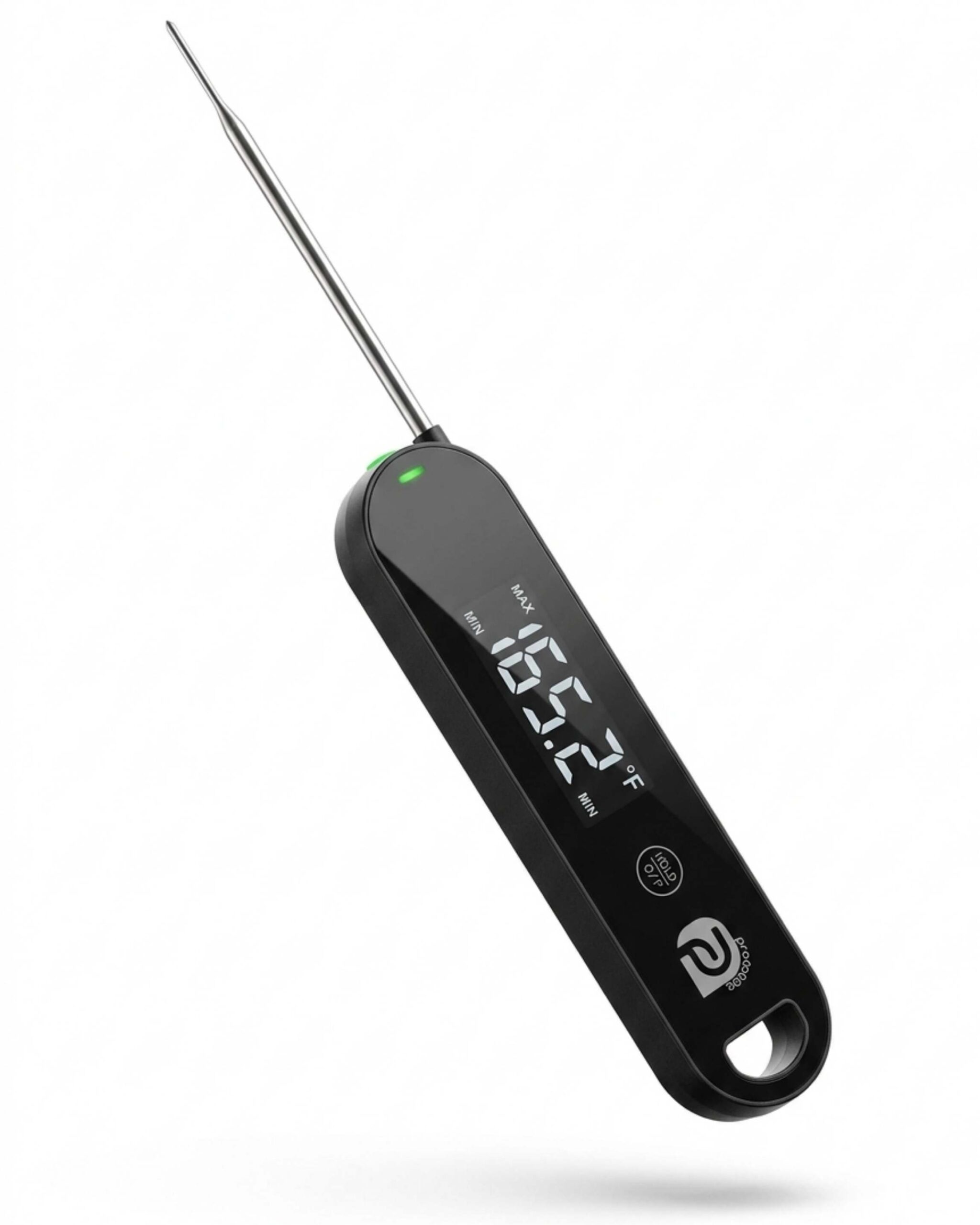 El Termómetro Digital Profoods combina un diseño ultra-delgado con tecnología de respuesta rápida, convirtiéndose en una herramienta indispensable para el chef moderno. Este modelo está diseñado para ofrecer lecturas precisas en cuestión de segundos, permitiendo un control riguroso de la temperatura sin interrumpir el flujo de trabajo en la cocina o el taller de pastelería.