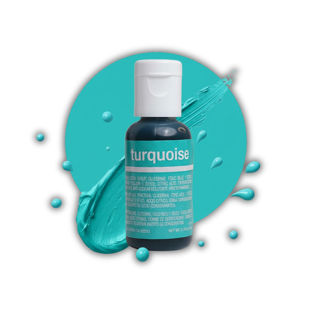 Colorante alimentario de alta calidad, diseñado para dar a tus creaciones de repostería y cocina un color turquesa vibrante y profundo.Características principales:Color Concentrado: Su fórmula de gel líquido altamente concentrada garantiza un color intenso que no se desvanece con el tiempo y que no altera la consistencia, el sabor ni la textura del producto final.Versatilidad: Es ideal para teñir una amplia variedad de preparaciones, como glaseados, crema de mantequilla, fondant, masas para pasteles y galletas, pastas de goma e incluso bebidas.Fácil de usar: Viene en una botella de 20 gramos, por lo general con un sistema de goteo, que facilita su aplicación y permite controlar la cantidad de colorante para obtener el tono deseado.Propiedades: Es resistente a la decoloración, no tiene sabor y es apto para veganos, sin gluten, kosher y halal.
